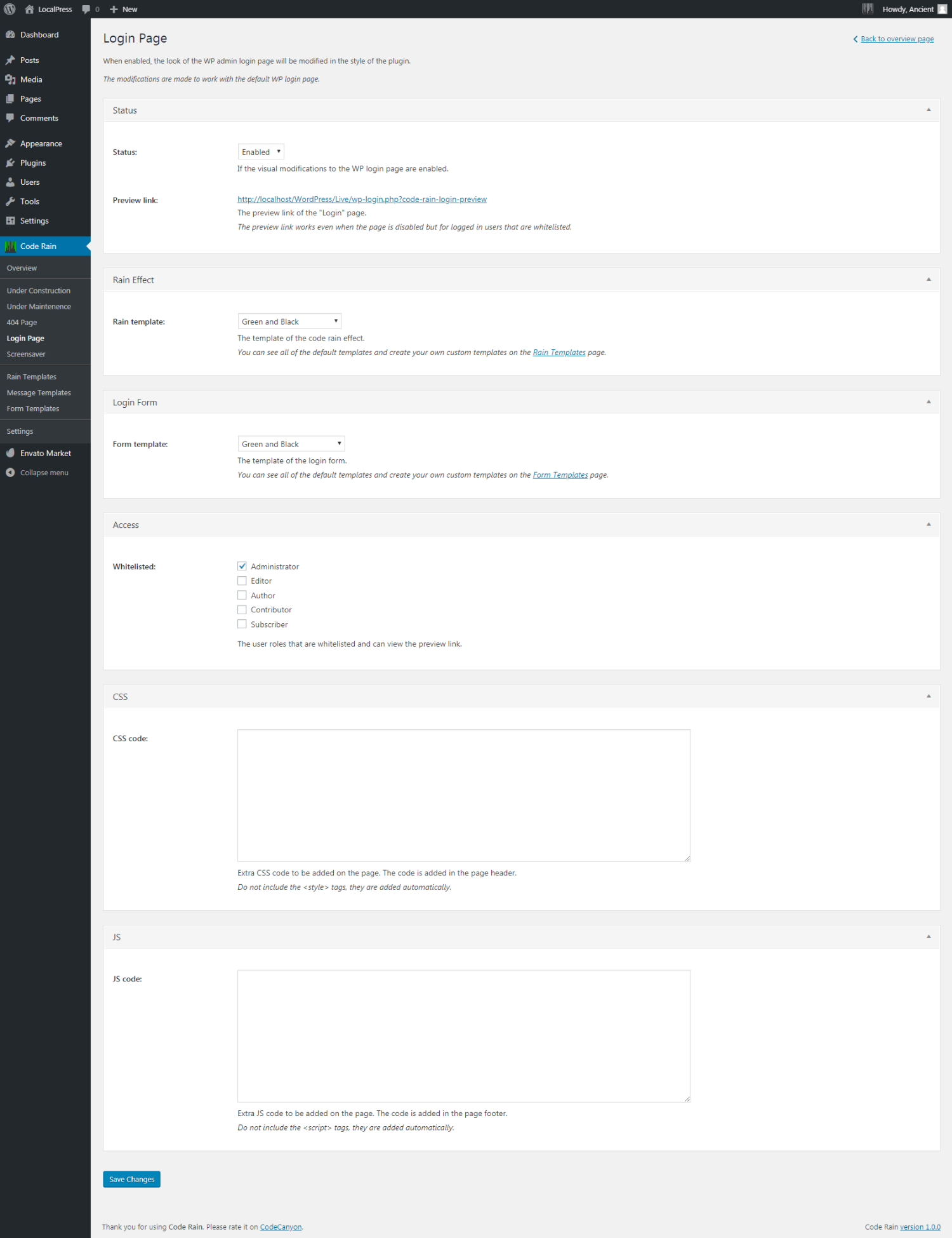 Everything on the page is customizable from the admin.